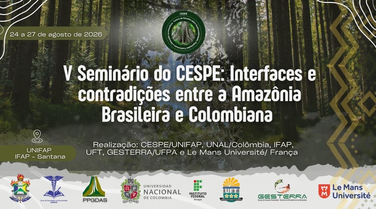 Período de 24 a 28 de agosto assistir palestras internacionais, nacionais, debates em mesas redondas sobre as contradições nas Amazônias brasileiras e colombianas e apresentar trabalhos na UNIFAP e IFAP.
